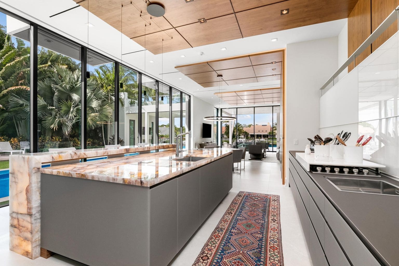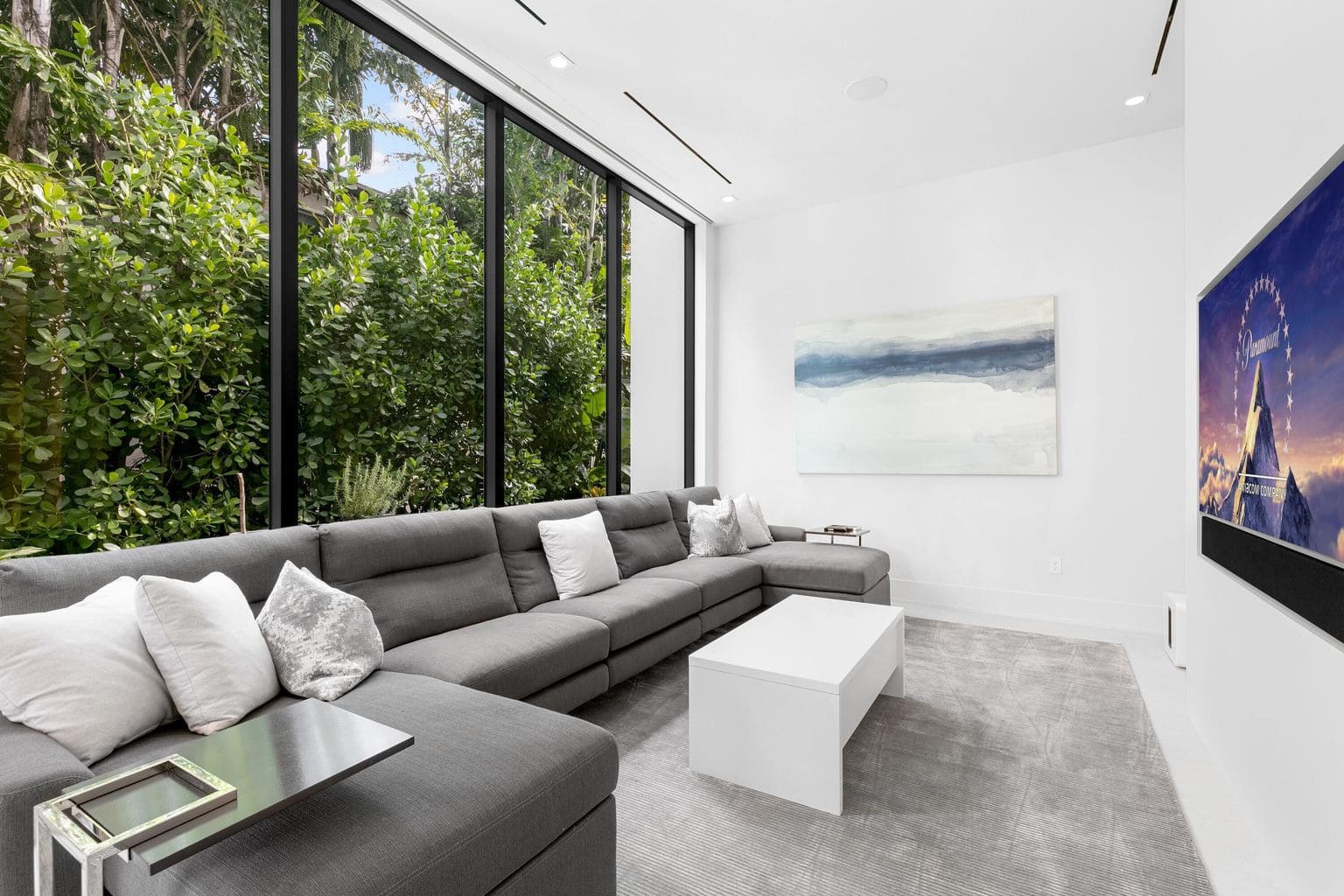 A sophisticated contemporary residence defined by double-height ceilings, expansive glass walls, and clean architectural lines. The design centers around a private courtyard pool that fills the home with natural light while creating a seamless connection to the tropical surroundings.
