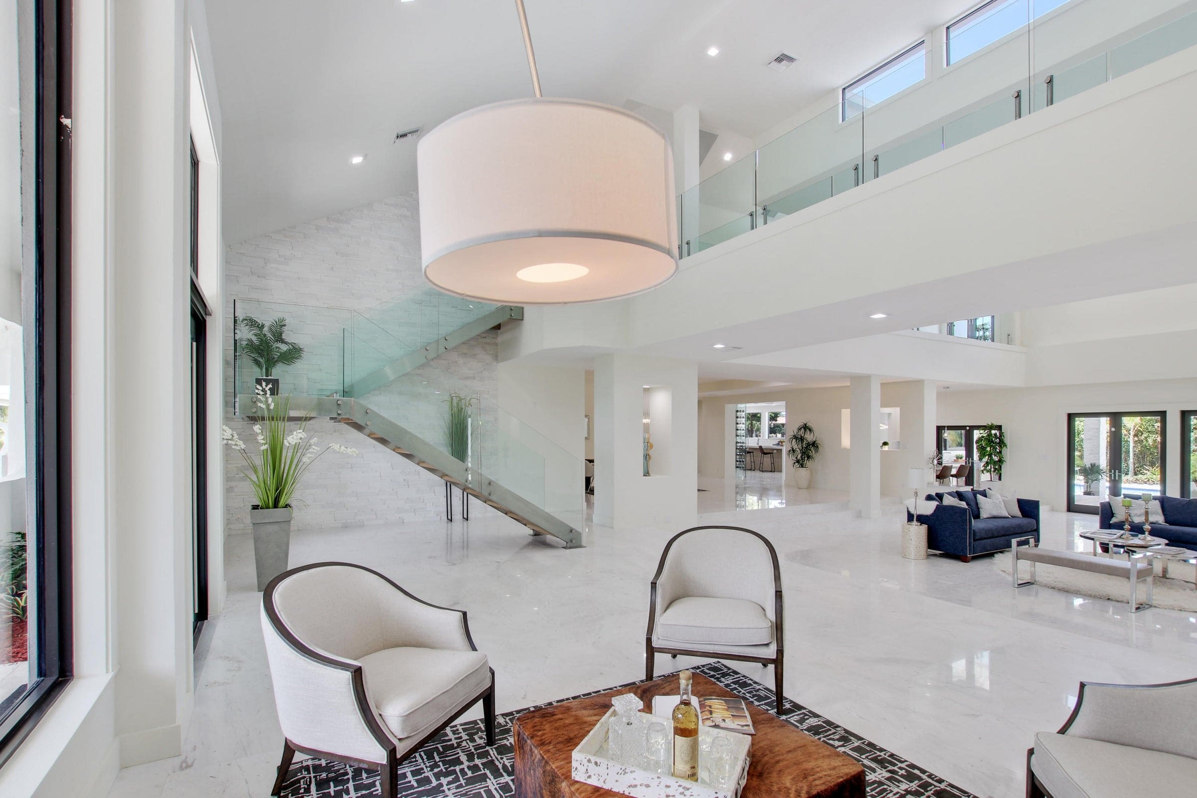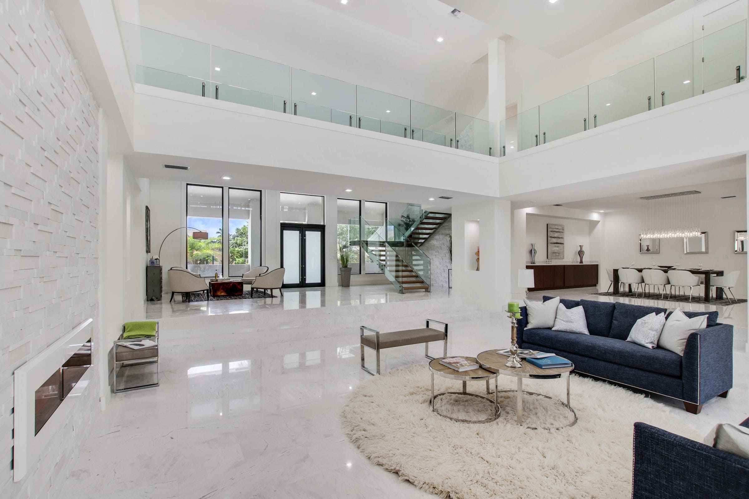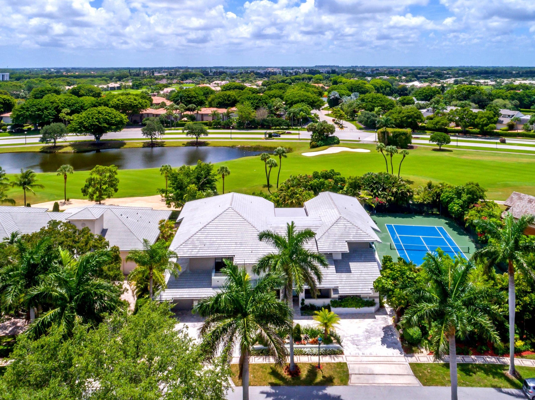 A 10,000 sq. ft. contemporary golf-course residence featuring soaring ceilings, expansive open living spaces, and a refined palette of marble, glass, and natural textures. Resort-style amenities include a private tennis court, gym, spa, and outdoor entertaining spaces overlooking the lush fairways of Boca Raton Country Club.