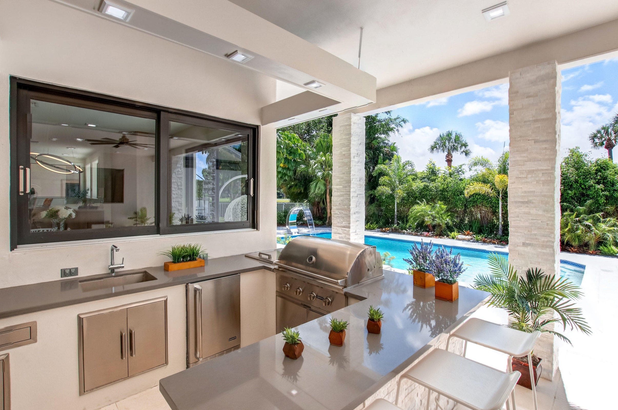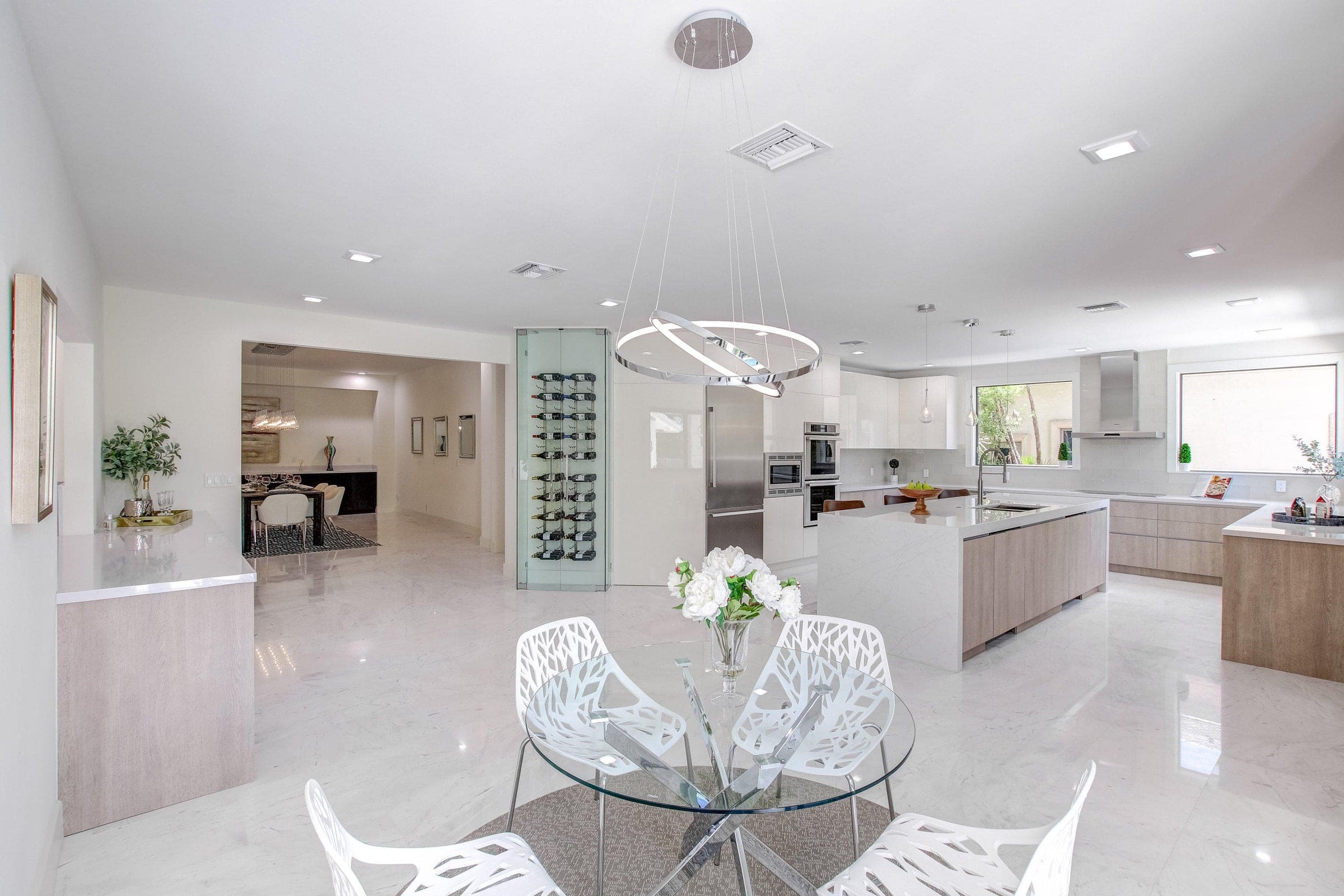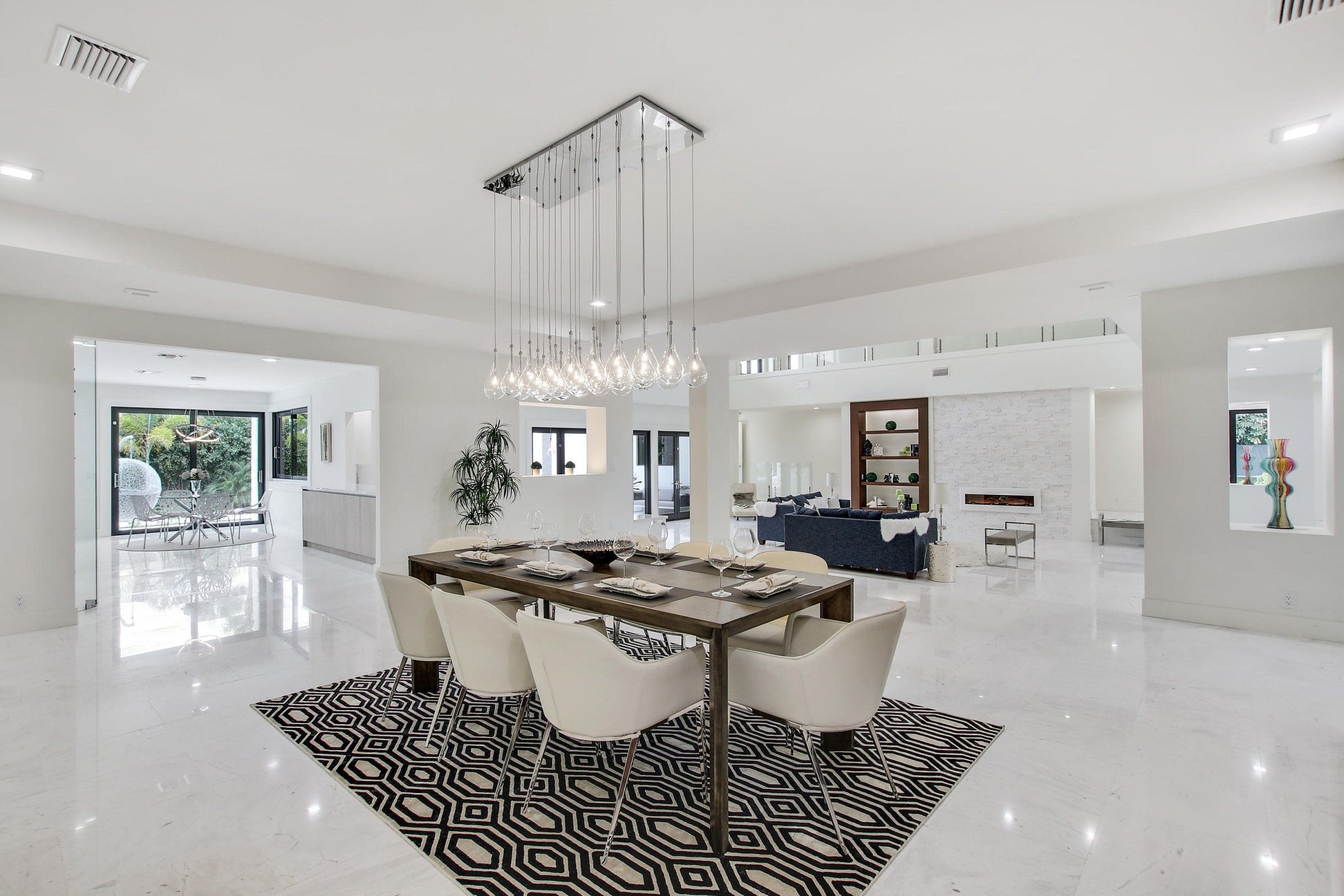 A 10,000 sq. ft. contemporary golf-course residence featuring soaring ceilings, expansive open living spaces, and a refined palette of marble, glass, and natural textures. Resort-style amenities include a private tennis court, gym, spa, and outdoor entertaining spaces overlooking the lush fairways of Boca Raton Country Club.