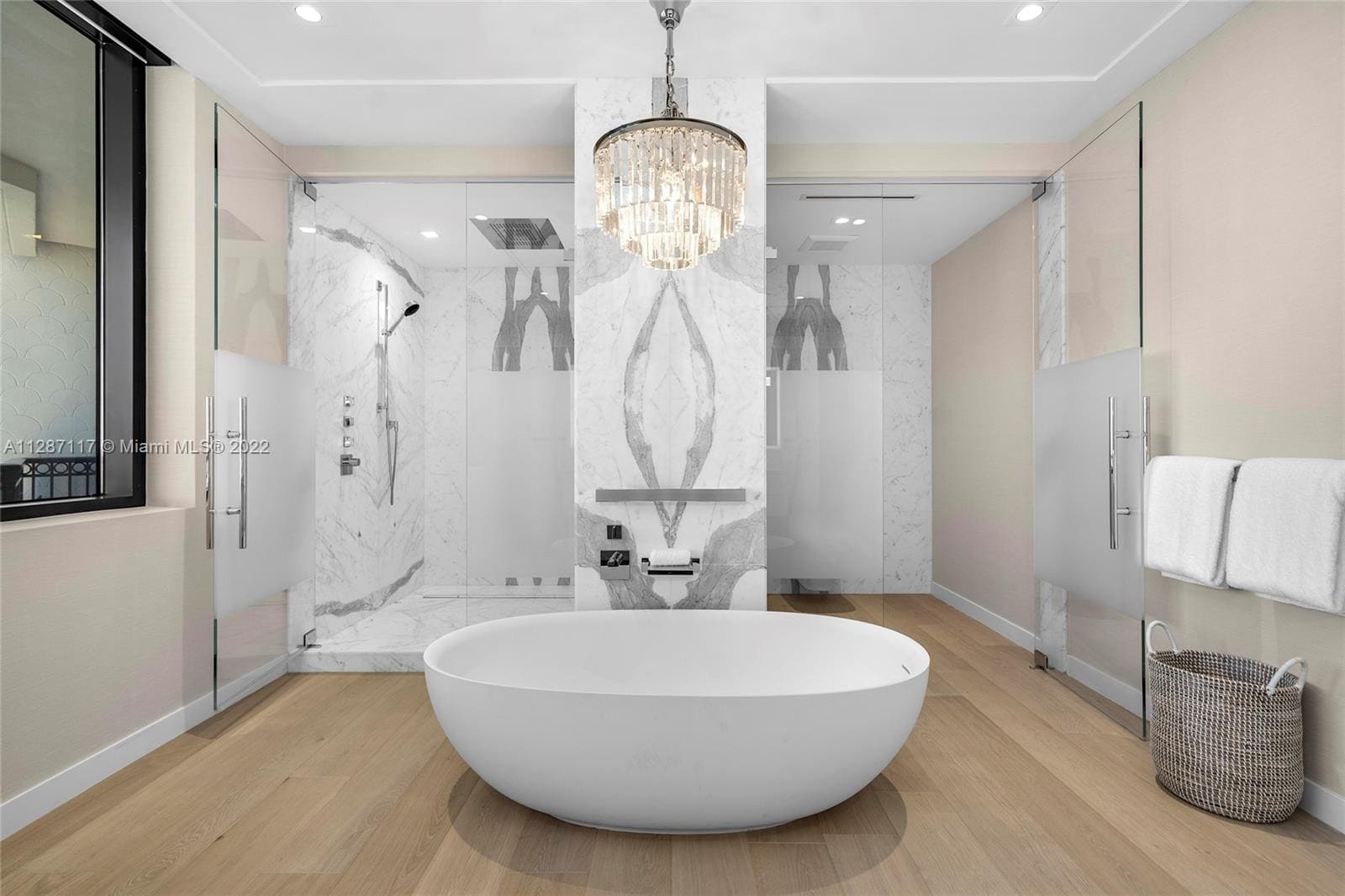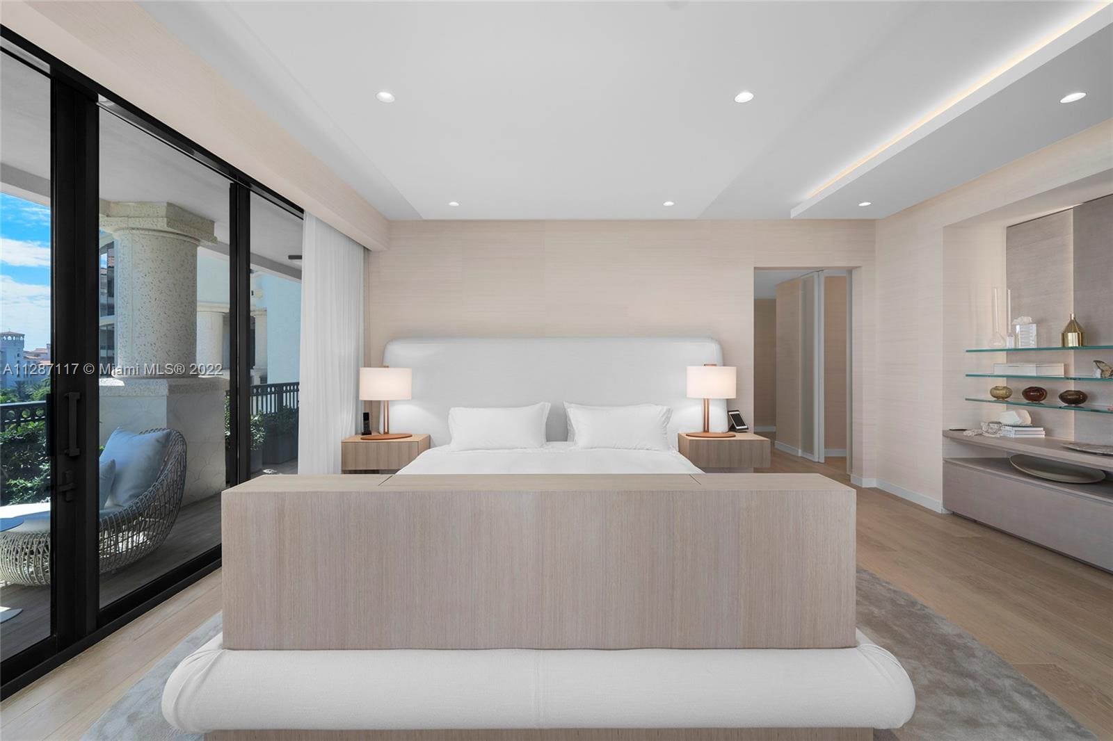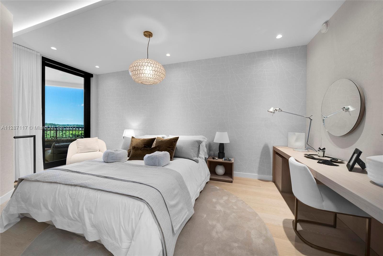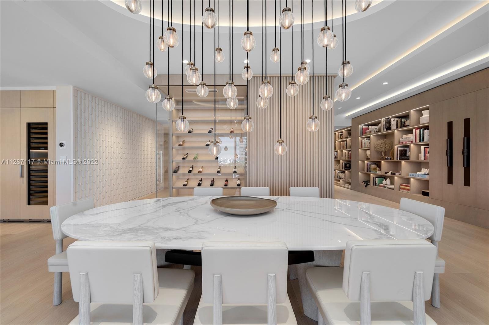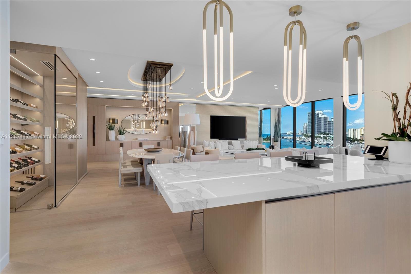 A sophisticated bayfront residence designed to maximize panoramic water and skyline views through expansive floor-to-ceiling glass and an open, flowing layout. A refined palette of soft neutrals, warm wood textures, sculptural lighting, and bespoke millwork creates a calm yet elegant atmosphere throughout the home.