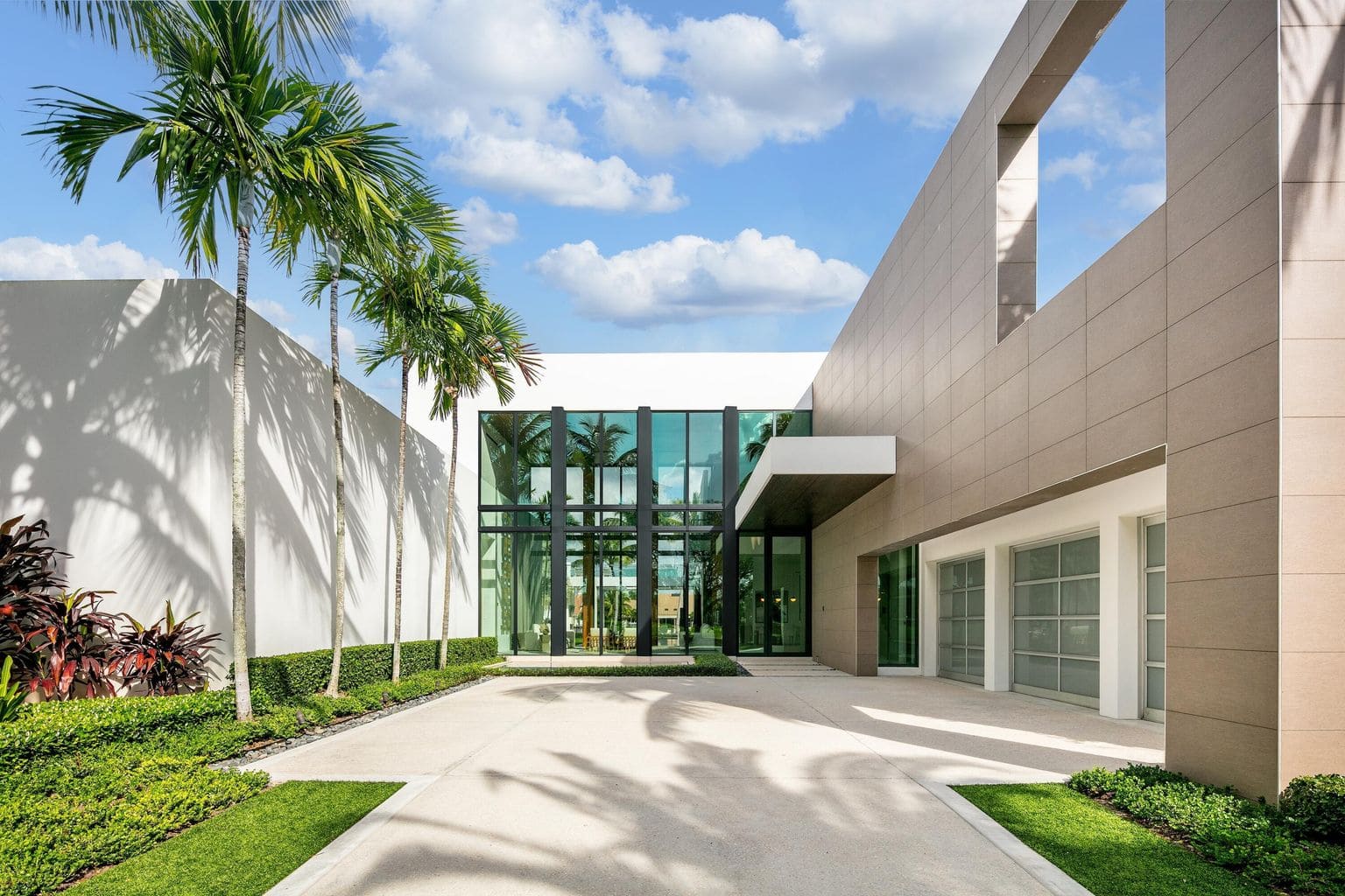 A sophisticated contemporary residence defined by double-height ceilings, expansive glass walls, and clean architectural lines. The design centers around a private courtyard pool that fills the home with natural light while creating a seamless connection to the tropical surroundings.